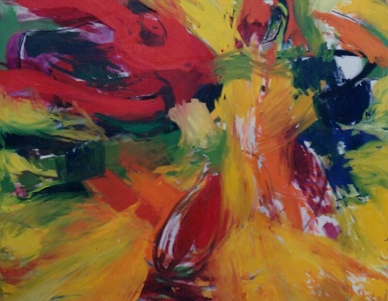'Flowers have treasures all over' 2001 Olieverf op doek 90x110cm